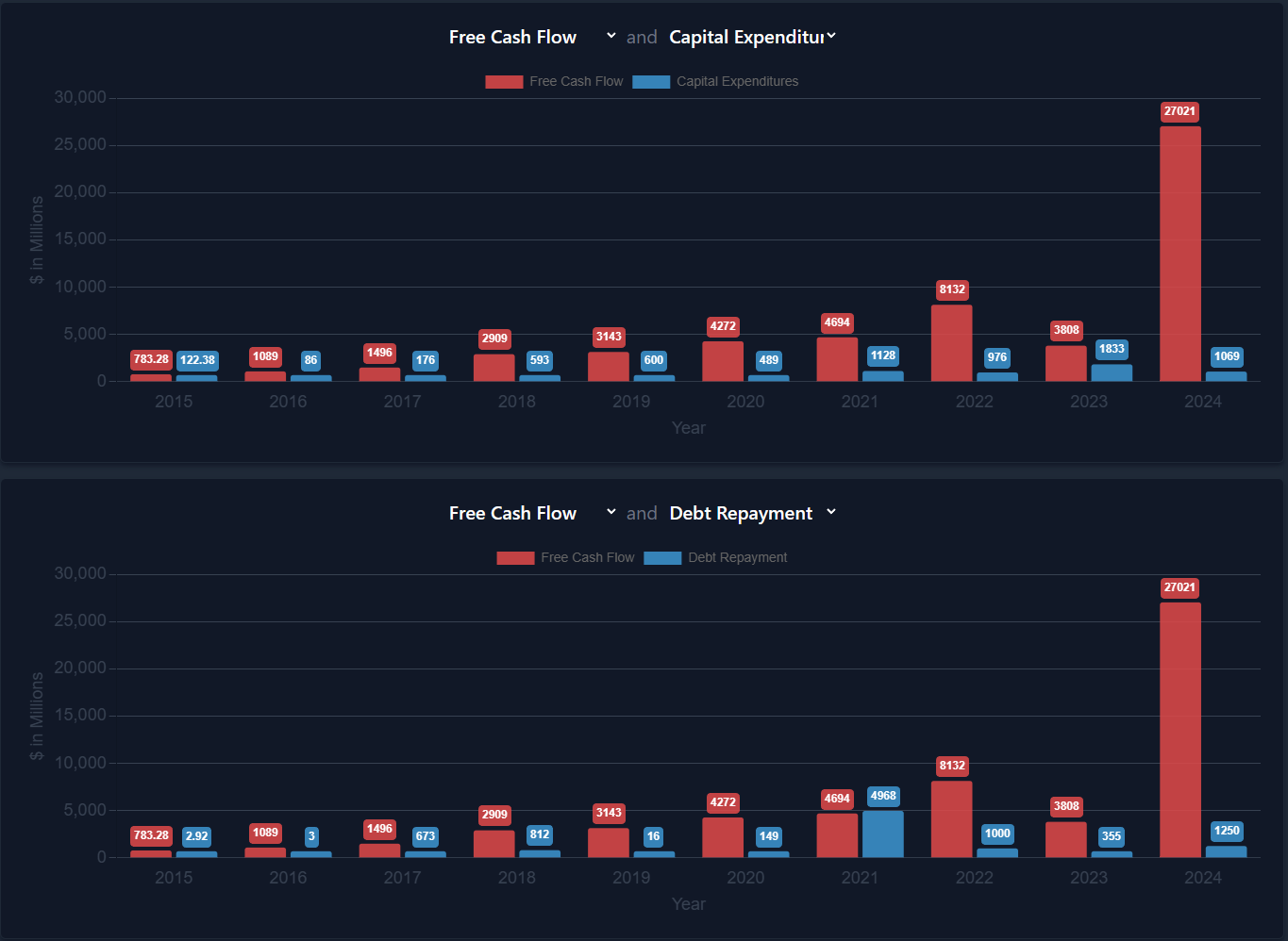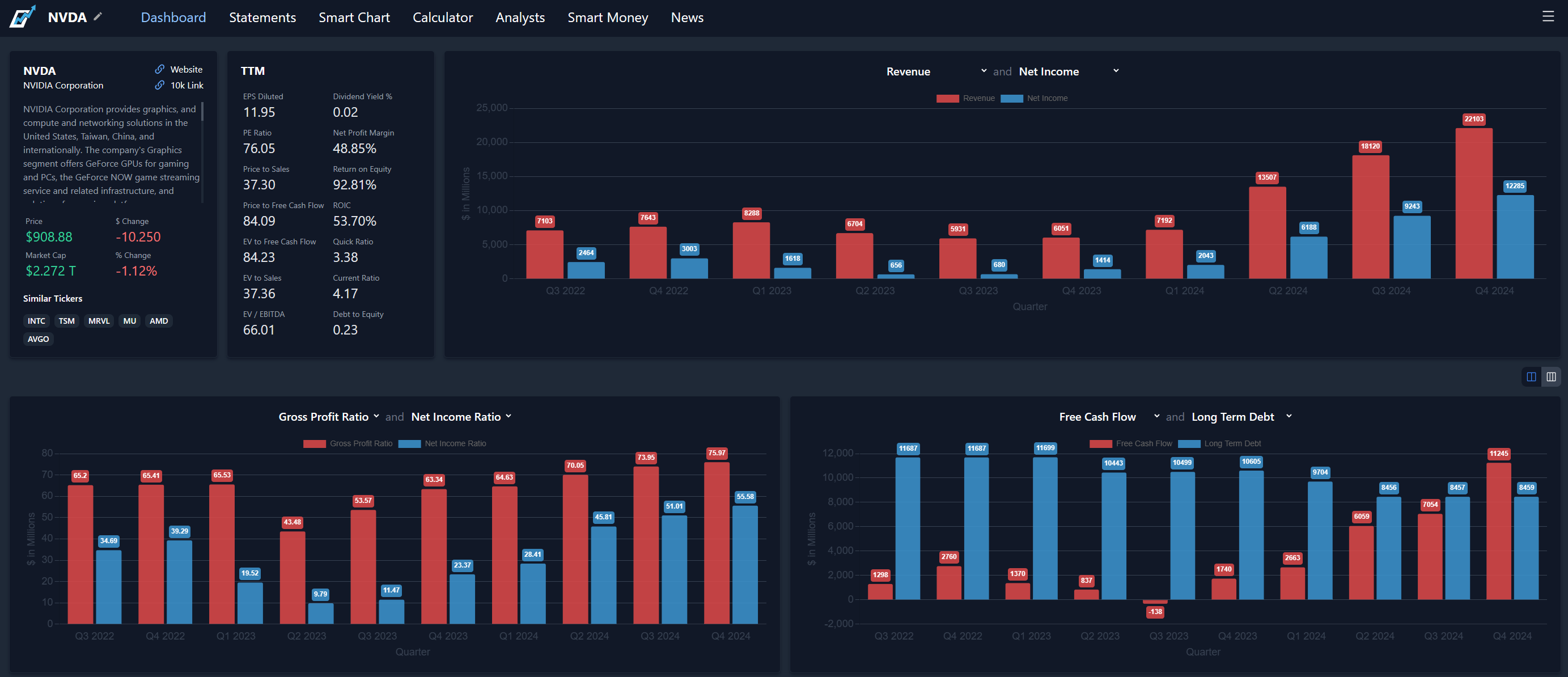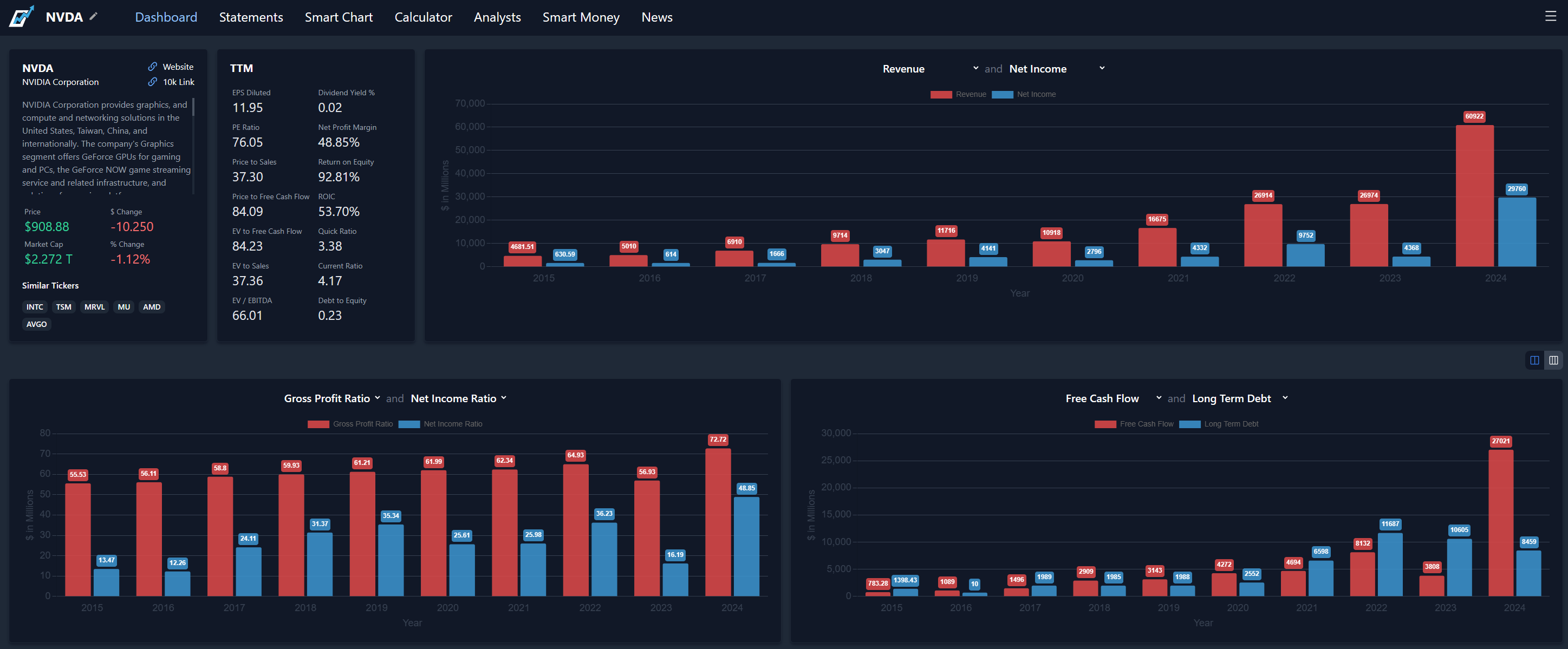 Nvidia's revenue, net income, profit margins, and free cash flow have grown impressively over the past decade. Their debt levels are also extremely manageable, which is great to see.